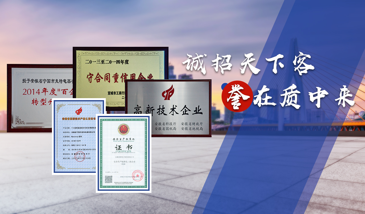 安徽麥特電子股份有限公司是專業研制電容器的高新技術企業。公司成立于2006年,注冊資金1000萬元,坐落于國家級寧國經濟技術開發區河瀝園區。公司致力于金屬化薄膜電容器和微波爐用高壓電容器的研發、生產及銷售。